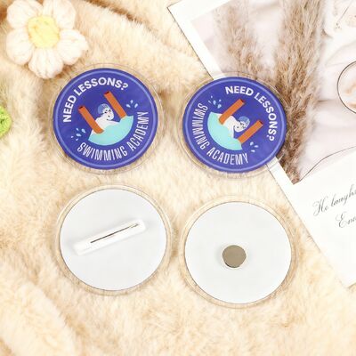 สร้างสปิ้นผม, แบจปุ่ม, และอุปกรณ์เสริมจากแอคริลิคที่มีล็อกโก้, การ์ตูน, ตัวละครอานิเมะ หรือชื่อตามต้องการปิ น ที่ มี ความ สามารถ มากมาย เหล่า นี้ มี แม็ก เนต ที่ หนุน เพื่อ การ ติด ติด กัน อย่าง มั่นคง กับ พื้นผิว ต่าง ๆ.
